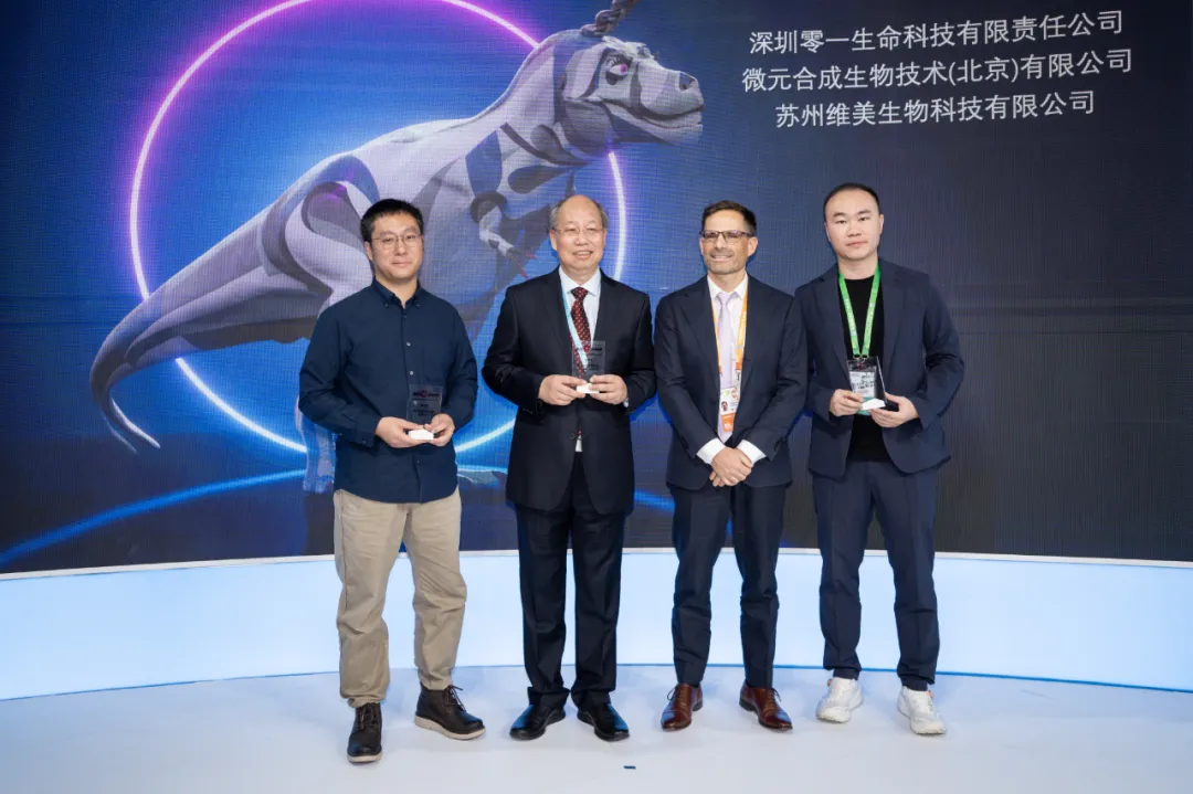 微元合成CEO刘波(左一)在第六届上海进博会欧莱雅展台领奖
