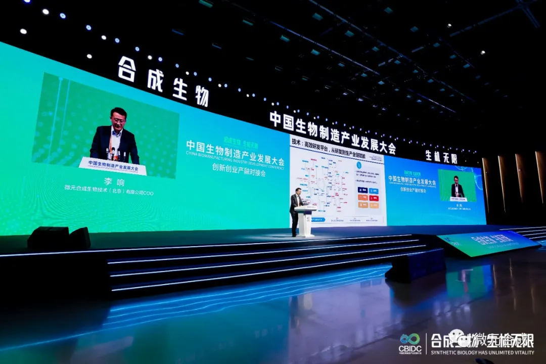 在本次大会的“创新创业产融对接会”论坛上,微元合成COO李响做了题为“合成生物,绿色制造”的专题演讲,分享了微元合成对合成生物在绿色生物可持续发展领域的观点和愿景,并向与会嘉宾分享了微元合成在大健康减糖领域的微元方案,以及生物发酵法生产阿洛酮糖的战略布局。